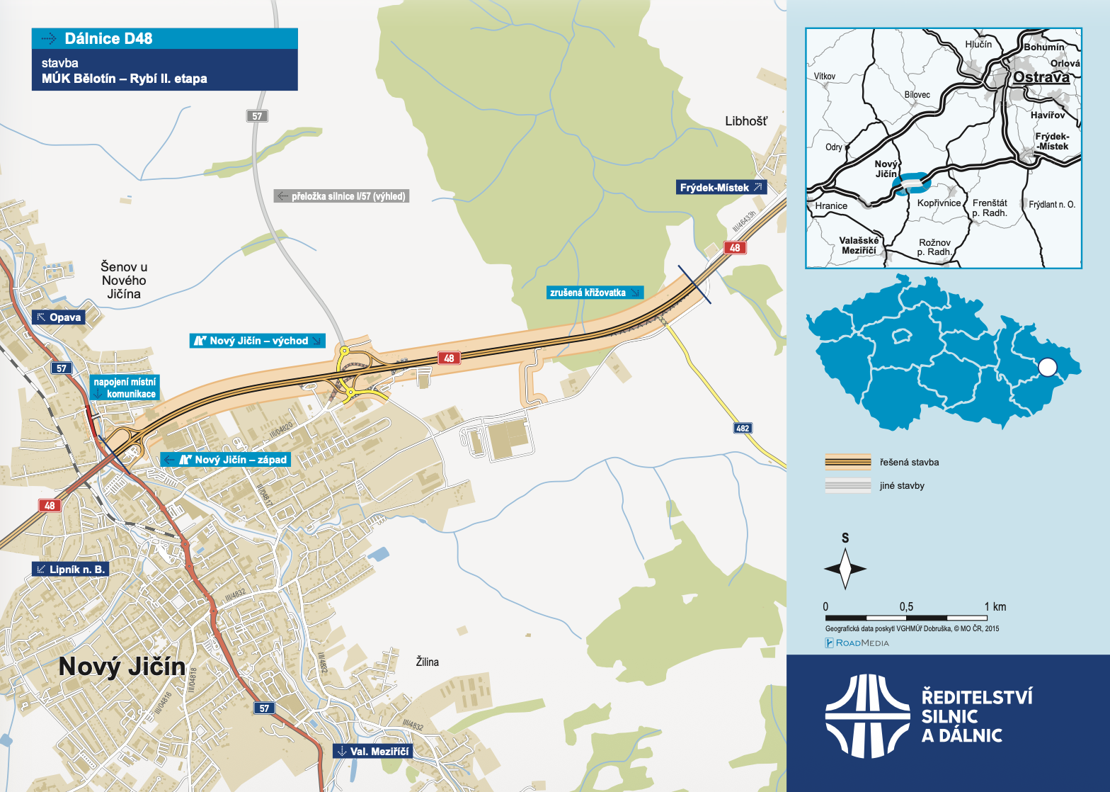 Dvě velké křižovatky: MÚK Nový Jičín-západ a MÚK Nový Jičín-východ zajistí plynulé napojení na stávající síť.