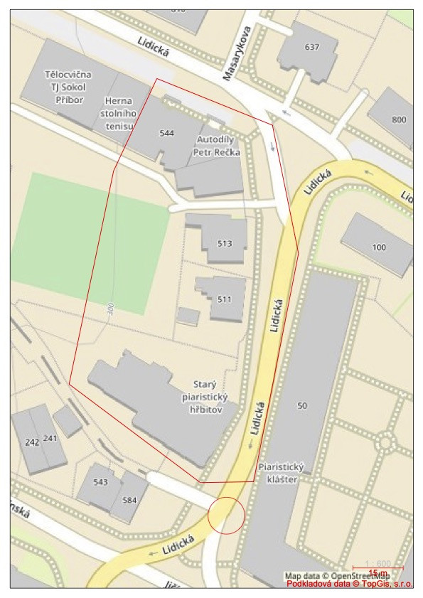 121673 Příbor, Příbor Lidická u č.p. 50 - porucha na řadu DN 125 GG ulice Lidická, dle mapového podkladu Umožněno předzásobení a následně přistavení cisterny