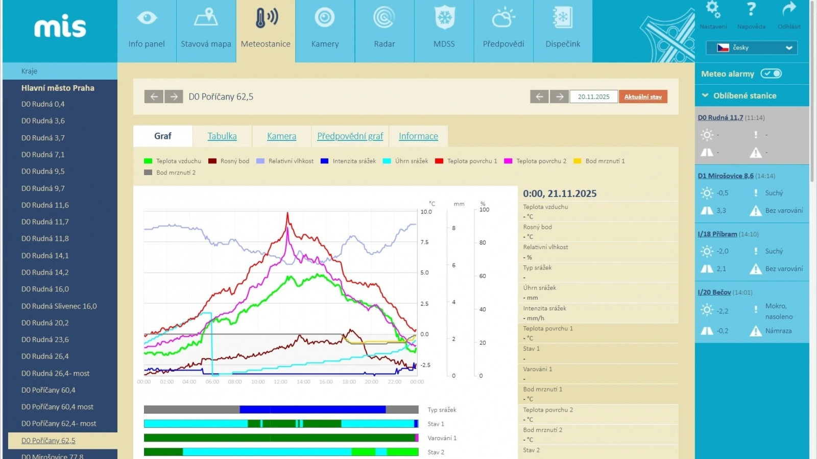 Ředitelství silnic a dálnic používá k zajištění bezpečnosti provozu stále větší množství špičkových technologií, které kromě klidnější dopravy zajišťují zvýšení efektivity silniční infrastruktury. Zásadní roli, zejména v zimních měsících, hrají meteostanice napojené na Meteorologický informační systém (MIS).