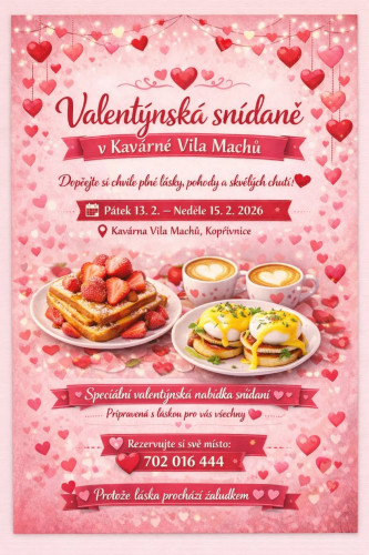 Chcete začít den netradičně? Vila Machů v Kopřivnici láká na speciální Valentýnské snídaně. ☕️ Užijte si ráno v nádherném prostředí secesní vily a nastartujte víkend sladce a v klidu. Rezervace na 702 016 444 je jistotou! 🍓