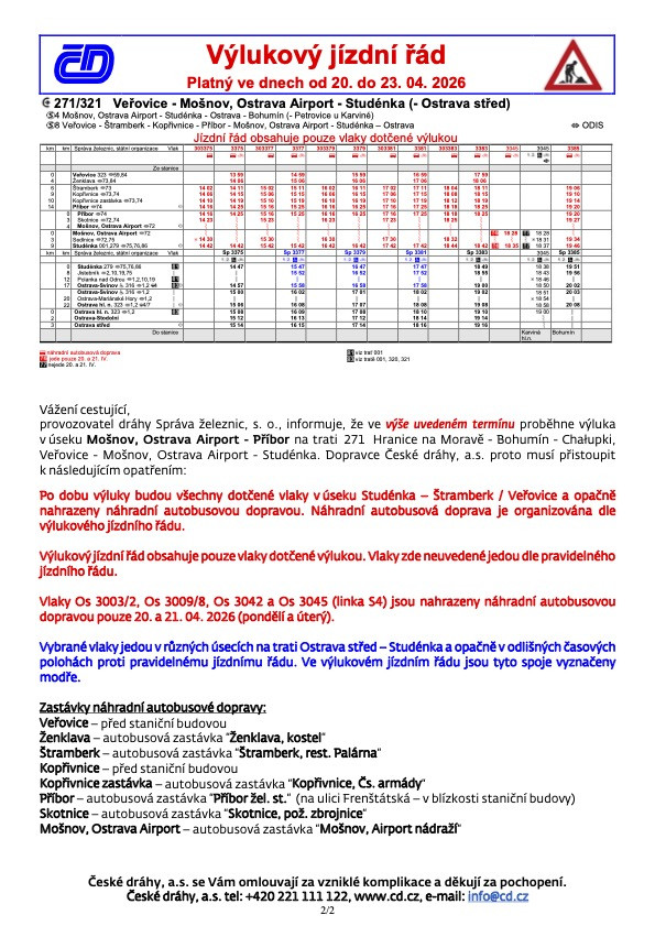 Číslo Ulice Dotčená oblast Plánované zahájení Plánované ukončení Způsob náhradního zásobování Důvod odstávky