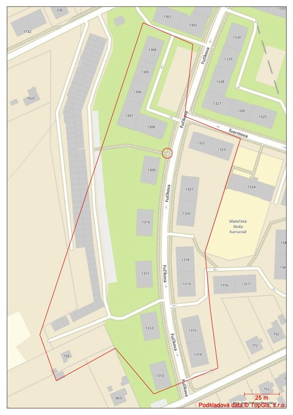 122287 Příbor, Příbor Fučíkova u č.p. 1309 - porucha na řadu DN 125 GG ulice Fučíkova, Šmermova, dle mapového podkladu Umožněno předzásobení a následně pojezd cisterny v oblasti
