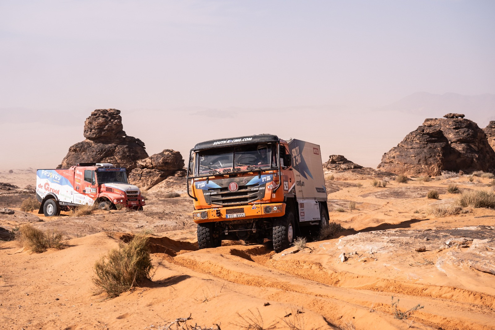 A že ty letos stojí za to. „Líbí se mi to víc než loni. Je to víc syrové, víc hardcore," přikyvuje zkušený dakarák Tomeček 💪. „Takovou náročnosť mám rád. A všude kolem vidím, že to letos fakt bude končit až v samotném cíli v Janbu." 🏜️ Závodníci a s nimi i jejich rychlé asistence se na trati musejí vyrovnat s trialovými pasážemi, kde se přejíždějí kameny velké jako kolo od auta, s mnoha vyschlými řečišti, nekonečnými písečnými pistami a opravdu těžkými dunami 🪨. Občas některou extra těžkou dunu objedeme. Ujedeme třeba o kilometr víc, ale vyhneme se zbytečnému riziku, přiznává navigátor Tomáš Kazarka.