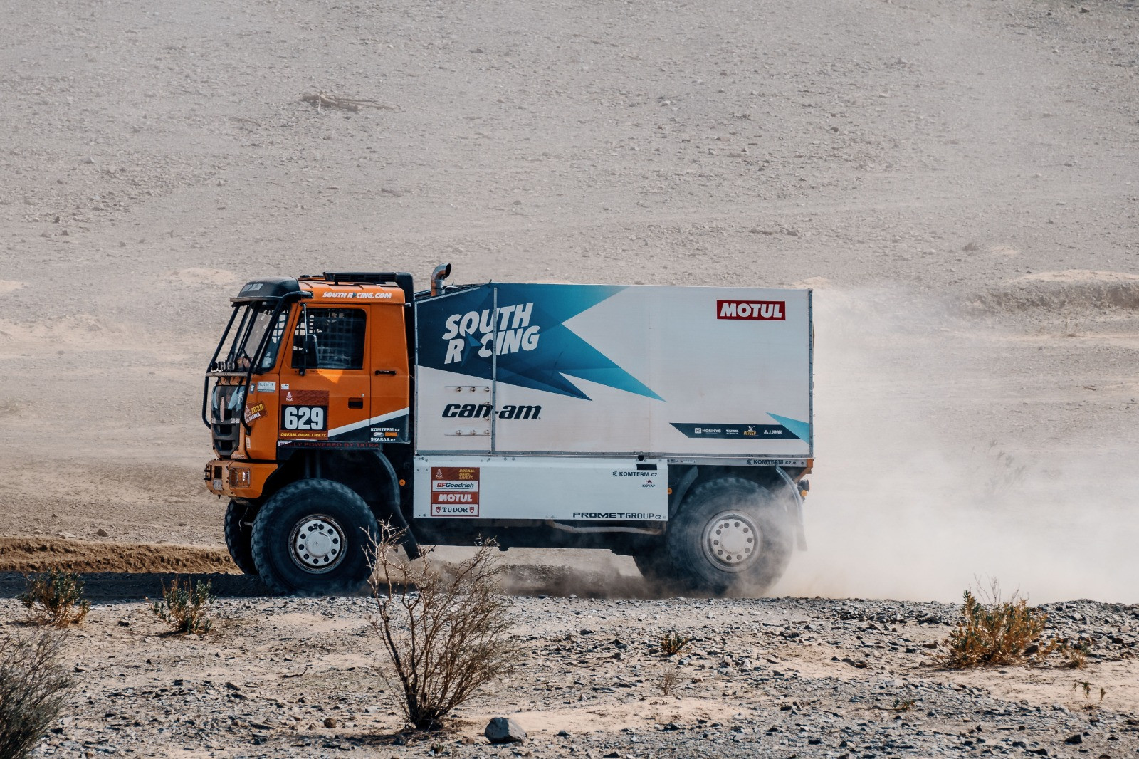 Těsně před startem musel skousnout pravidly vynucenou změnu navigátora. Za syna Metoděje na poslední chvíli zaskočil slovenský spolujezdec Tomáš Kazarka 🤝. Třetí sedačku obsadil Grant Ballington, jihoafrický mechanik South Racingu. Ač nepřijeli primárně závodit, od začátku se v celkovém pořadí kamionů pohybují vysoko, mezi 18. a 23. místem. Po třetí etapě byli mezi asistenčními kamiony nejrychlejší ⏱️. Pak ale přišly větší servisní zásahy u can-amů, a v osmé etapě také technické potíže Tomečkovy Tatry.