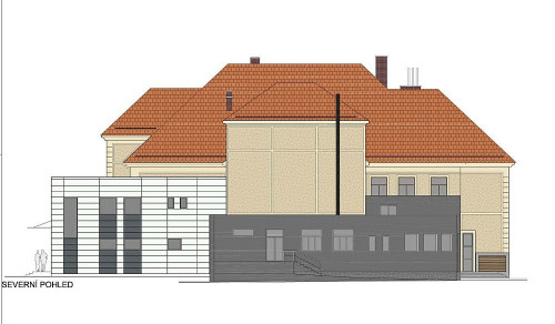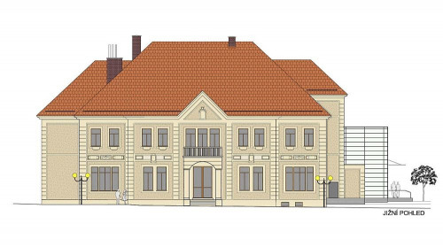 Barevné řešení fasády Kulturní dům Příbor jižní pohled