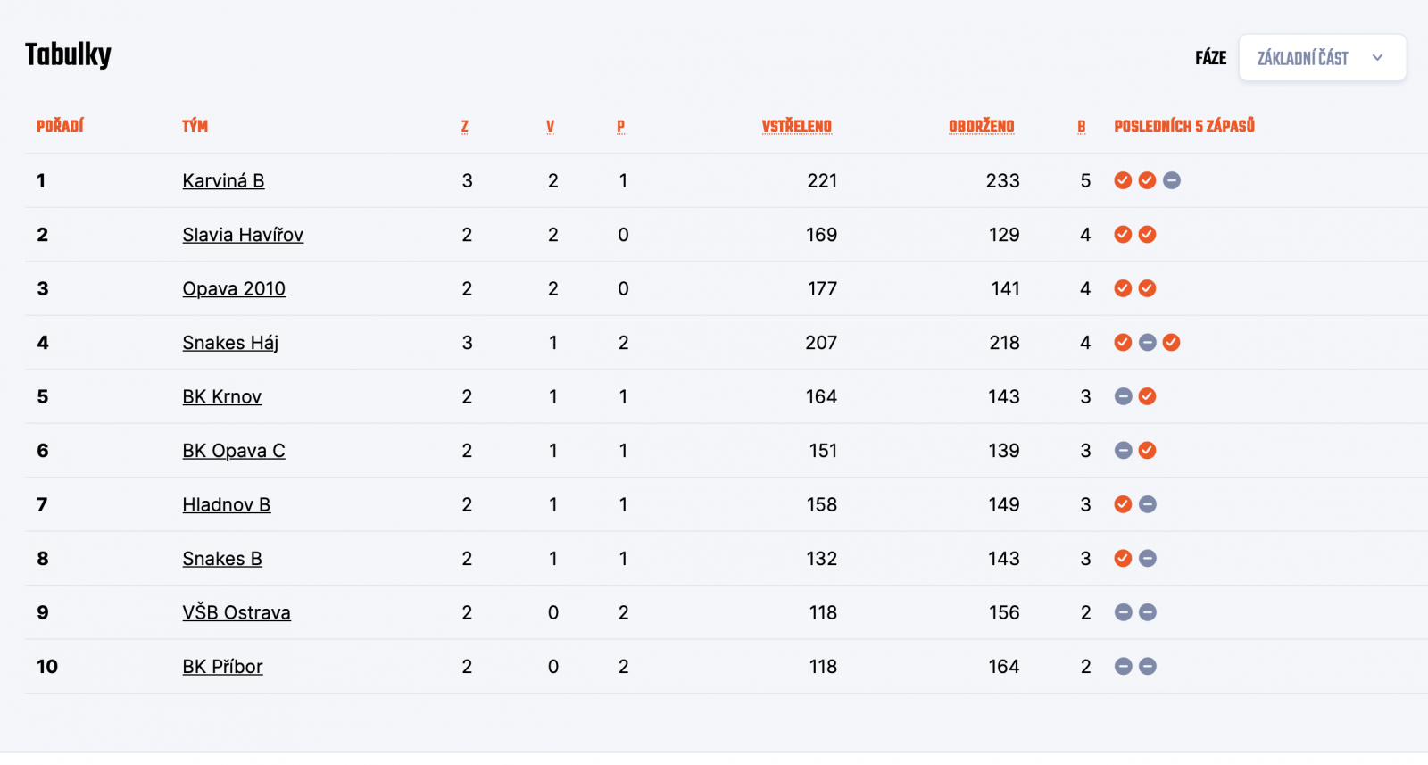 3 Snakes Ostrava B 9 6 3 735 613 15