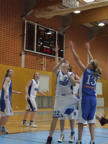 V prvním utkání narazila naše děvčata na družstvo domácích a ve velice dramatickém a vyrovnaném utkání nakonec zvítězila po prodloužení 80:77, když v normální hrací době utkání skončilo nerozhodně 72:72.