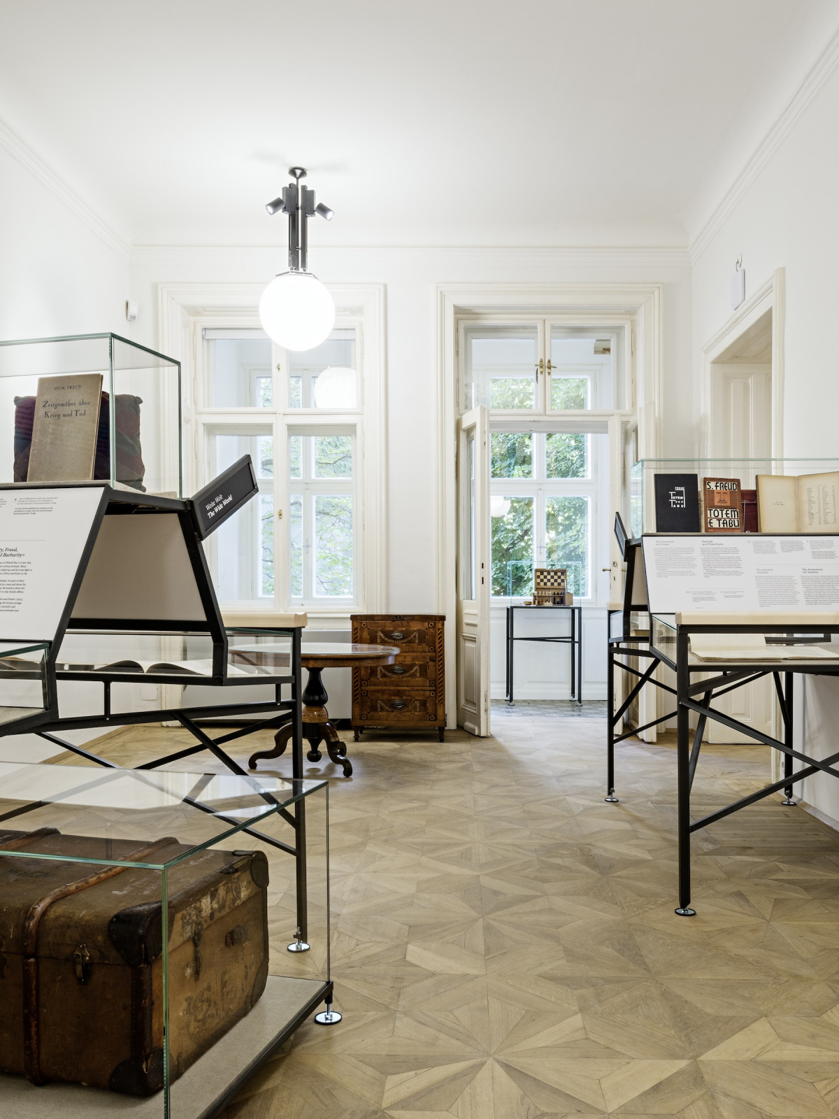 Muzeum dává návštěvníkům nahlédnout do Freudova osobního i profesního života. Ačkoli původní nábytek, včetně slavného gauče, byl odvezen do Londýna (nyní v The Freud Museum London), muzeum vystavuje: