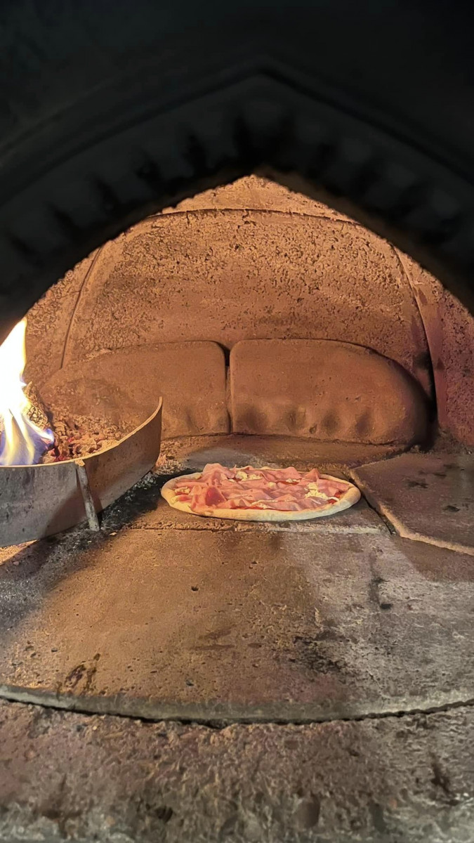 Dominantou restaurace je kamenná pec na bukové dřevo, kde před zraky hostů naší kuchaři připravují nejen pizzu, ale pečou i ostatní pokrmy.